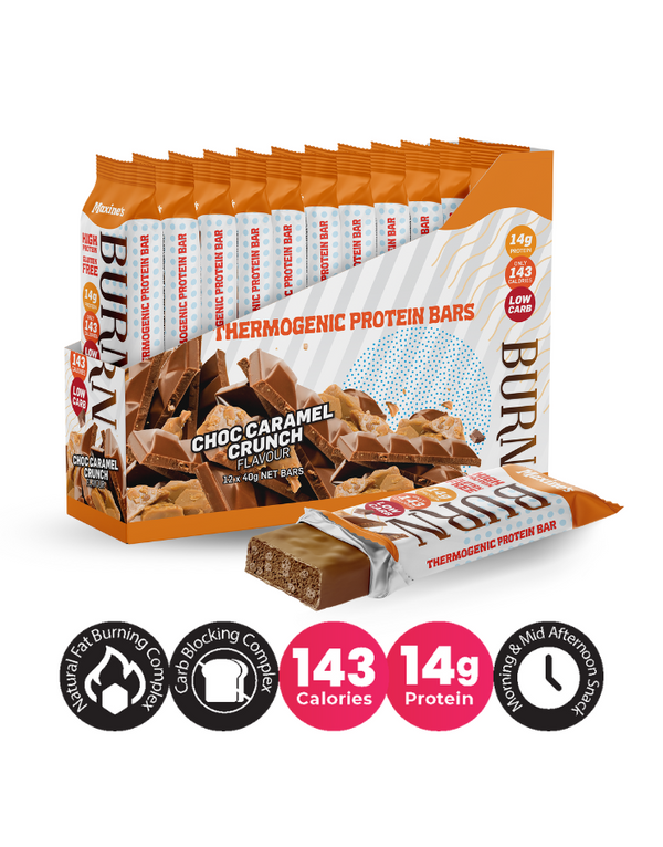 Maxine's Burn Protein Bars Choc Caramel Crunch 40g (Box of 12)