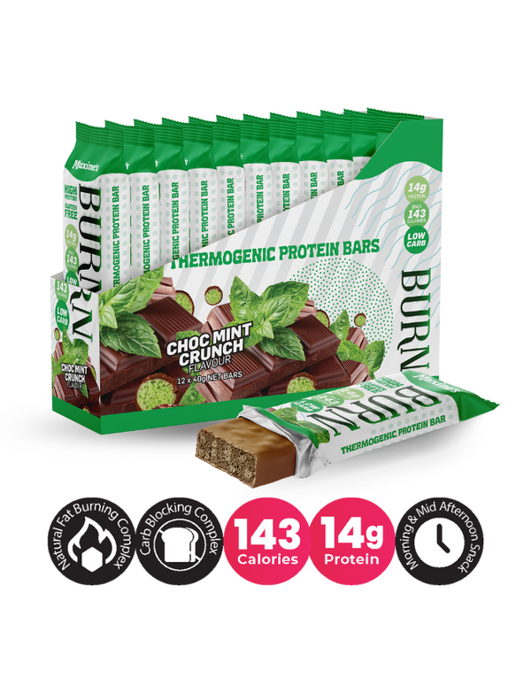 Maxine's Burn Protein Bars Choc Mint Crunch 40g (Box of 12) - U.P. $49.90