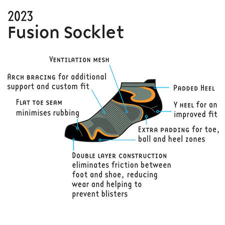 Stokin Gelang Kaki Dua Lapisan Fusion Wanita menggabungkan keselesaan berlapik dengan Sistem Lapisan Berganda 1000 Batu yang inovatif , memberikan perlindungan lepuh yang dipertingkatkan dan mengurangkan geseran . Direka bentuk untuk pelari, pejalan kaki dan individu yang aktif , stokin ini menampilkan padding yang diletakkan secara strategik pada tumit, jari kaki dan bebola kaki untuk kusyen dan perlindungan terbaik. Pelapik buku lali yang dilanjutkan melindungi daripada kerengsaan kasut, manakala zon pengudaraan menggalakkan kebolehnafasan dan memastikan kaki sejuk.