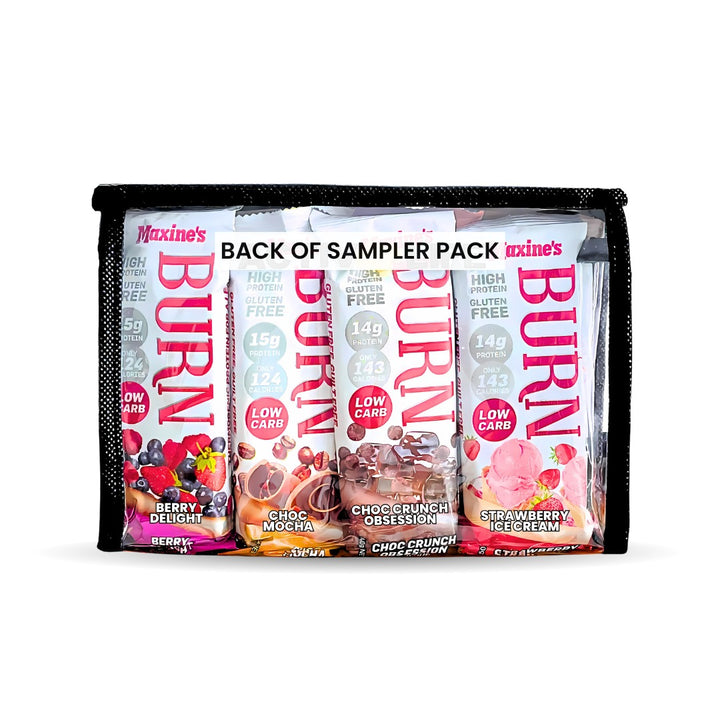 Maxine's BURN Bars ialah snek protein tinggi yang ideal untuk atlet wanita dan wanita aktif . Direka bentuk untuk menyokong kehilangan lemak, pemulihan otot dan tahap tenaga , bar ini rendah lemak dan karbohidrat sambil menampilkan adunan protein termogenik yang unik . Dengan penyekat karbohidrat tambahan dan metaboliser lemak , ia membantu anda menjadi lebih kurus dan lebih kuat sambil menikmati hidangan yang lazat, tanpa rasa bersalah —sempurna sebagai snek yang sihat atau hidangan selepas bersenam .