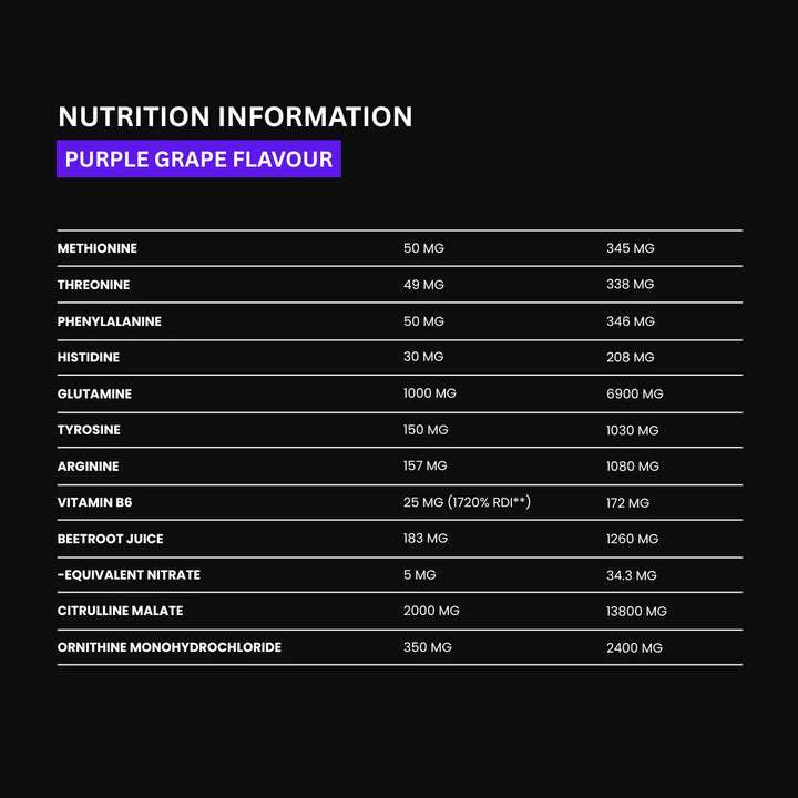 • 增强肌肉恢复:每份含有 500 毫克 L-谷氨酰胺,有助于肌肉修复并减少恢复时间。